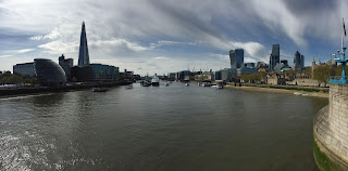 En toen stonden we ineens op de Tower Bridge van de ietwat vreemde skyline van London te genieten!