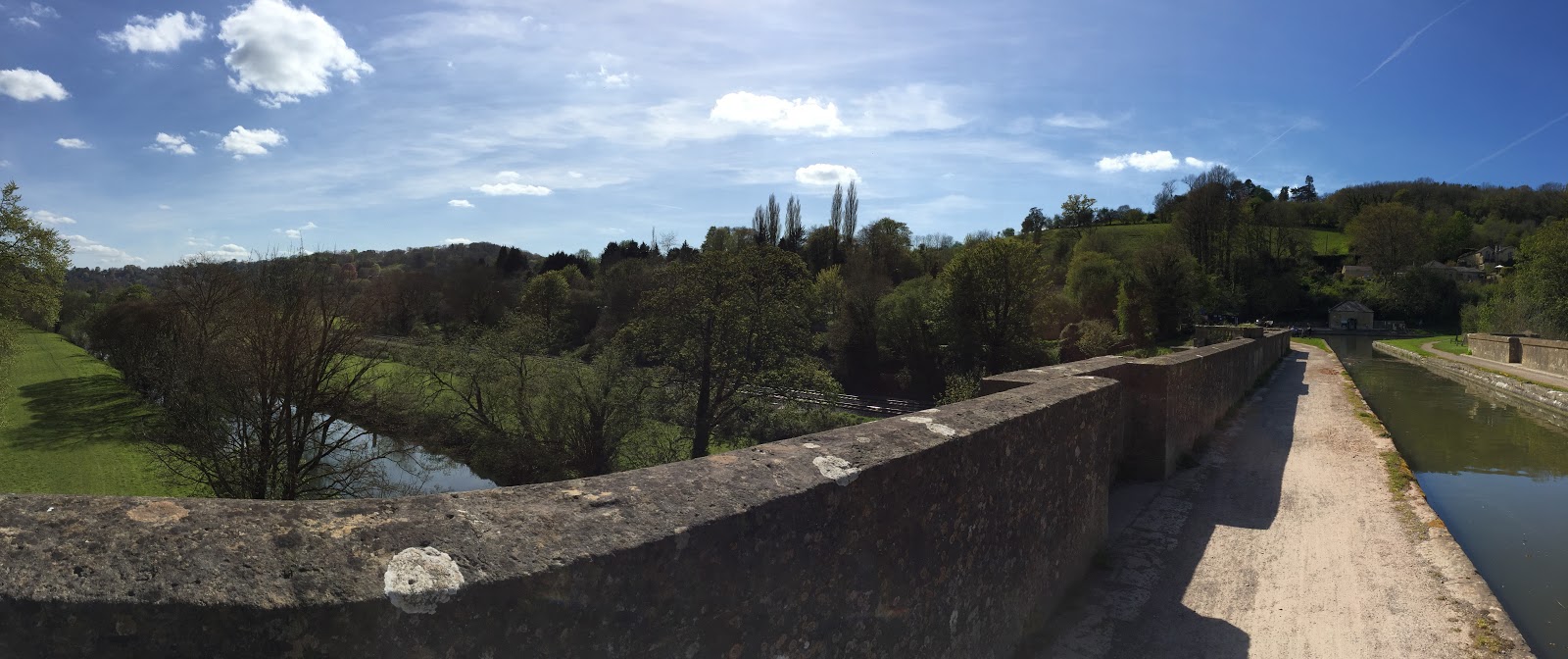 Na de steencirkel gezien te hebben volgde nog wat korte klimmetjes het dal uit en kwam ik langs één van de befaamde witte paarden die zijn afgebeeld in het gras van de groene heuvels. Nadat ik het paard was gepasseerd kwam ik al snel in het plaatsje Devizes terecht, vanaf waar ik langs een kanaal naar Bath zou fietsen. En wat een kanaal! Het kanaal golft zachtjes met het heuvelende landschap mee en maakt gebruik van 44 achtereenvolgende sluisjes om het hoogteverschil in het landschap te overbruggen. Eerlijk gezegd vond ik al die sluisjes achter elkaar indrukwekkender dan de steencirkel of het witte paard 🙂 Het toont iets van de volhardenheid van de mens!