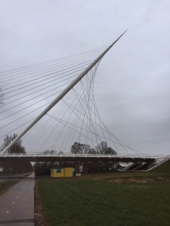 Uiteindelijk heb ik ervoor gekozen om naar mijn ouders te fietsen in Nunspeet. Zij hebben daar een caravan en dat bood enigen flexibilieit ten aanzien van de slaapplek en het daaraan gerelateerde comfort. Vanaf Den Haag ben ik via Amsterdam, langs het Muiderslot, met een enorme omweg langs de randmeren via Harderwijk naar Nunspeet gefietst. Een afstand van 153km waarbij ik 60% van de tijd wind tegen heb gehad, 35% van de tijd naar van opzij en alleen een klein stukje fijn in de rug. En dat alles met volledige bepakking. De laatste 10km waren eigenlijk niet zo leuk meer. Vooral veel zadelpijn gehad, wat ik wijt aan mijn thermo onderbroek met naadjes. Het was wel een leuke route. Onderweg heb ik Calatrava in de Haarlemmermeer aanschouwd…