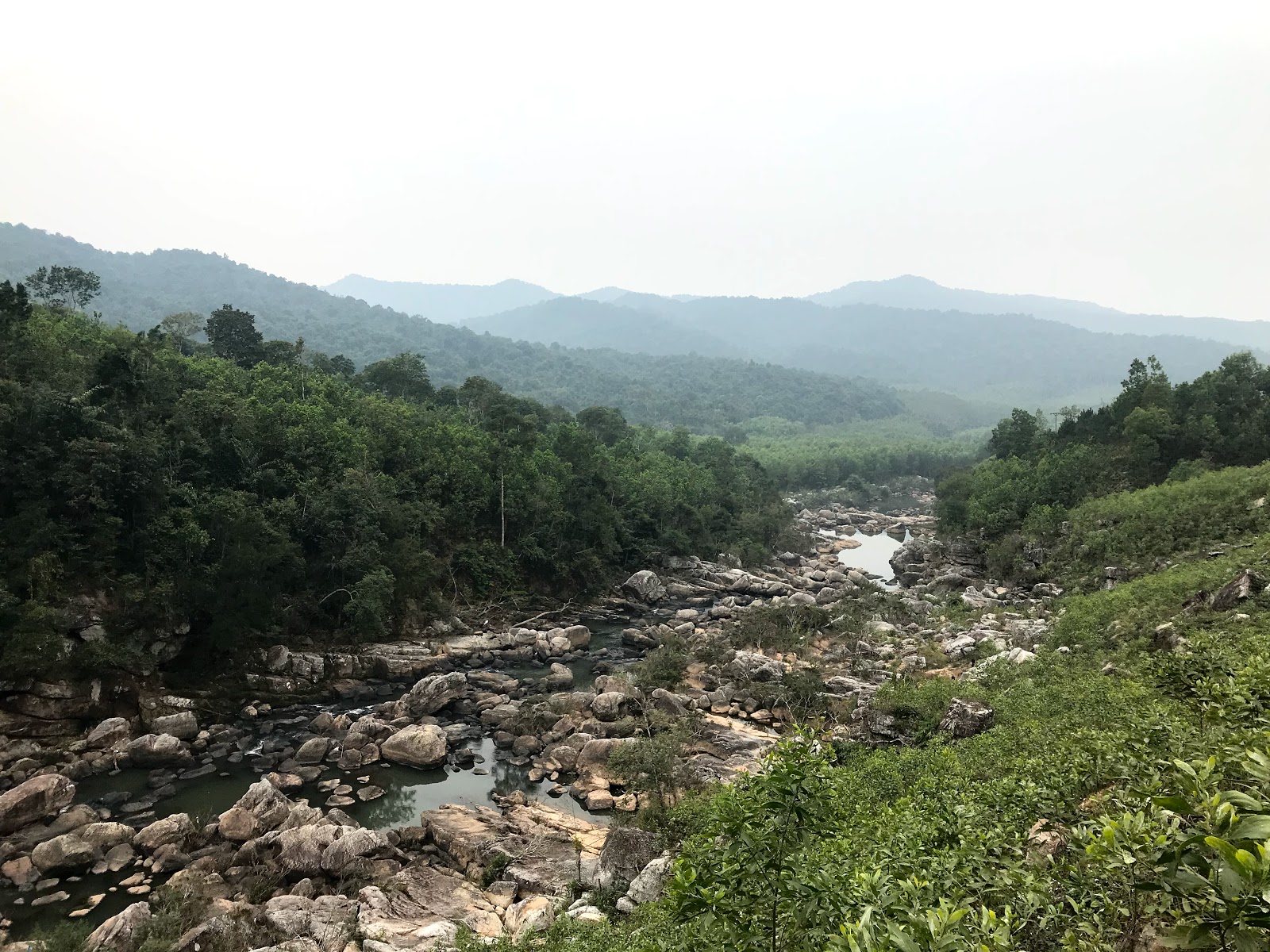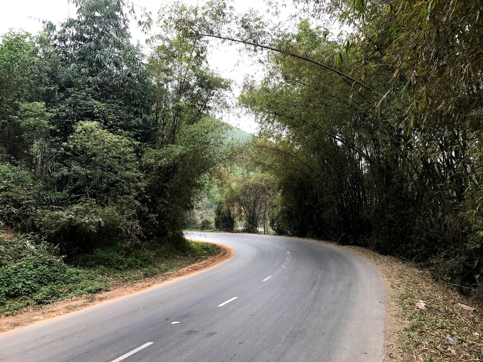 Day 1! The day started a bit hazy and with an overcast sky, adding to the already grey and pale appearance of the scenery. I’ve left this morning at 730 and left the busy roads of Halong behind me quite fast, replacing them with a road through rural area which was frequently and violently disrupted by the construction of the new express way between Hai Phong and Van Don. After about 30km I could also leave these frequent construction sites behind me, after which there remained only the many high tension power lines as a reminder of the large city that was still nearby. Gradually the power lines disappeared from the landscape and after about 40km I was making my first climb on an empty mountain road, with only a limited amount of scooters and barely any cars passing by. This was exactly the reason why I chose to head north!