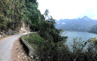 The acces road to Ba Bể Lake. Through dense rainforrest…