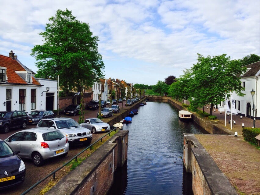 De volgende ochtend bleek mijn angst dat mijn fiets in het water zou verdwenen totaal onterecht. Ook gewoon goed geslapen, met dank aan de medewerkers van de camping die om 00:00 iedereen toch wel vriendelijk kwamen verzoeken om de muziek uit te zetten. Om 7:30 was ik ingepakt en ben ik onderweg gegaan. Na de 185km van gister ging dat wel wat stroefjes maar gelukkig was de te overbruggen afstand voor vandaag te overzien en had ik geen haast. De route was tot aan de Hollandse brug bekend aangezien ik daar een paar weken geleden ook al had gefietst. Het gebied tussen Hollandse Brug en Bunschoten-Spakenburg kende ik nog niet en op dat stuk was ik vooral benieuwd naar de vesting van Naarden. Wat een bouwwerk zeg, die vesting! Naarden heeft niet teleurgesteld! Vanuit Naarden door naar Huizen door mooi bosrijk gebied, met leuke doorkijkjes naar het water. Huizen stelt vervolgens niet zoveel voor.