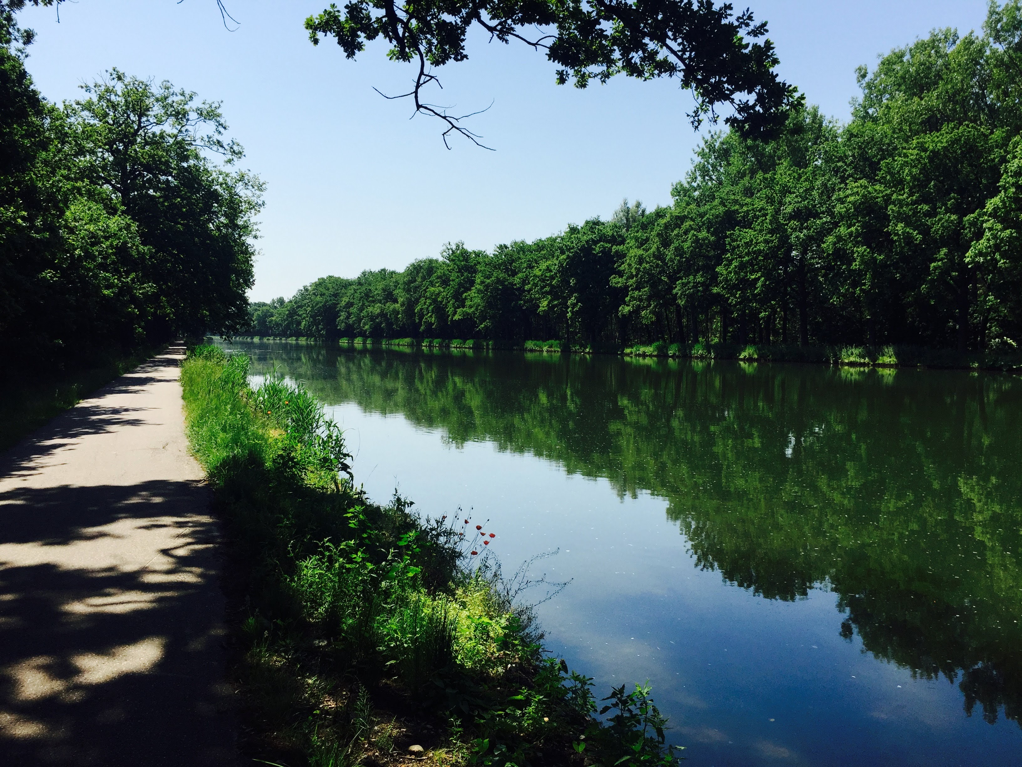 Om 1500 was het op de route 32,7 graden warm met een verstikkende warme wind. Mijn redding waren respectievelijk de Willemsvaart en de Maas. Langs de Willemsvaart was het redelijk koel door de schaduw van de bomen en de wind over het water. Bovendien kon ik af en toe mijn benen in het water laten bungelen en met mijn dorkie hoedje water over mezelf heen gooien. Hetzelfde kon bij de Maas. Het feit dat ik zoveel moeite heb met de warmte baart wel enigszins zorgen, aangezien het in Toscane niet veel koeler zal zijn dan vandaag. Wat ook zorgen baart is dat ik vandaag aan het einde van de trip de Bemelerberg op moest, wat ik toch ook wel als “zwaar” durf te bestempelen. Ik ben er echter van overtuigd dat er nog wel hogere hobbels op me wachten die steiler zijn dan de 6% van de Bemelerberg.