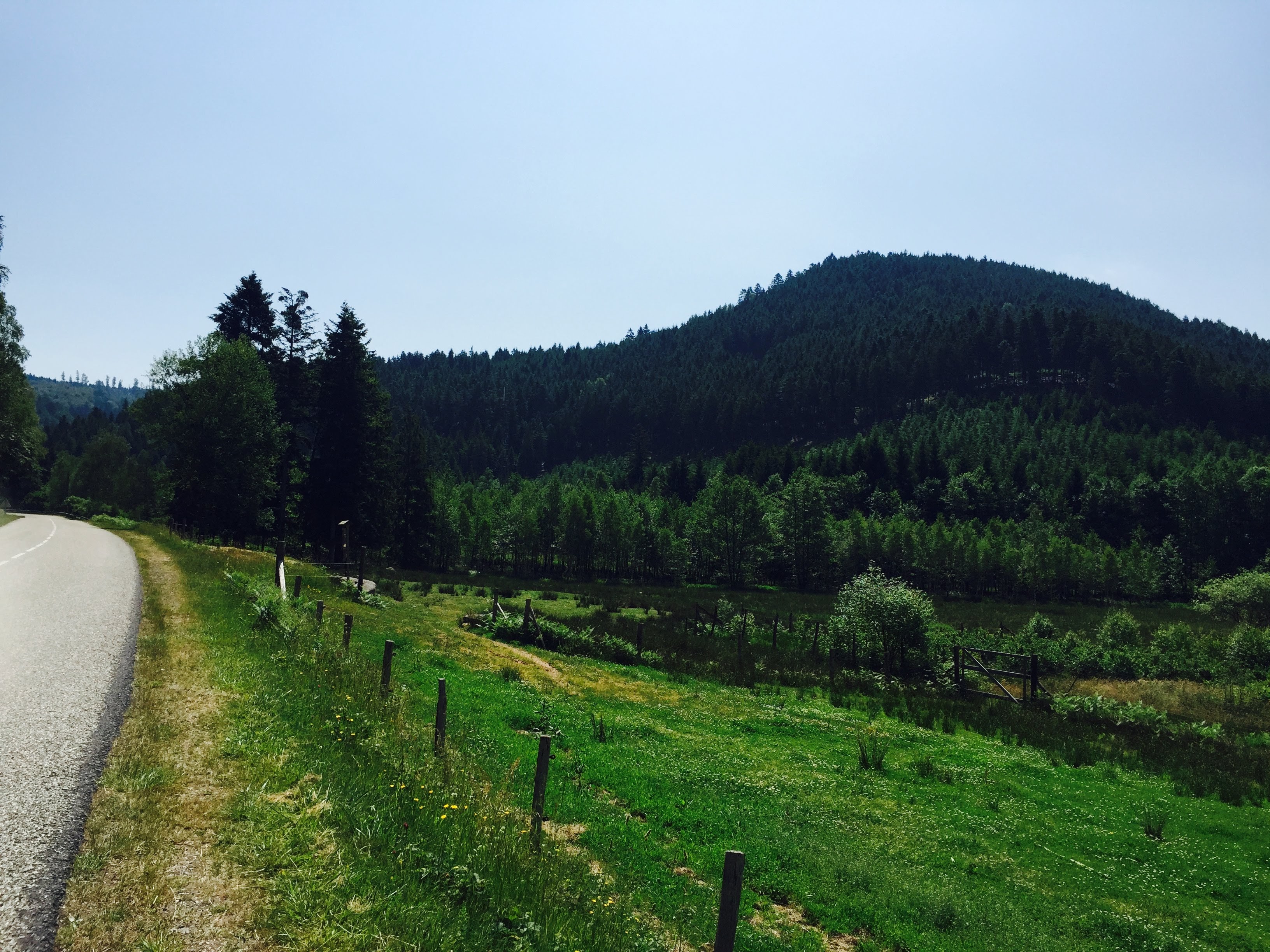 Ik heb er toch voor gekozen om de Col du Donon te gaan beklimmen in plaats van Straatsburg te bezoeken. Had gewoon geen zin in weer een dag lang heen en weer hobbelen over continue elkaar opvolgende heuveltjes. In plaats daarvan heb ik de eerste 40km langs een heerlijk vlak kanaal gefietst en ben daarna de Vogezen in gedoken. In plaats van dat het daar continue op en neer hobbelt beklim je eigenlijk gewoon één grote hobbel. Over een afstand van 23km ben ik vanaf een hoogte van 260 meter geklommen naar een hoogte van 760 meter. 500 meter de hoogte in dus. En dat ging eigenlijk ontzettend goed. Vooral leuk daaraan is dat ik daarna ook 12 kilometer mocht dalen. Best leuk, die potentiele energie. Na de Col du Donon vervolgens nog de Col de Steige maar die was een stuk minder hoog.