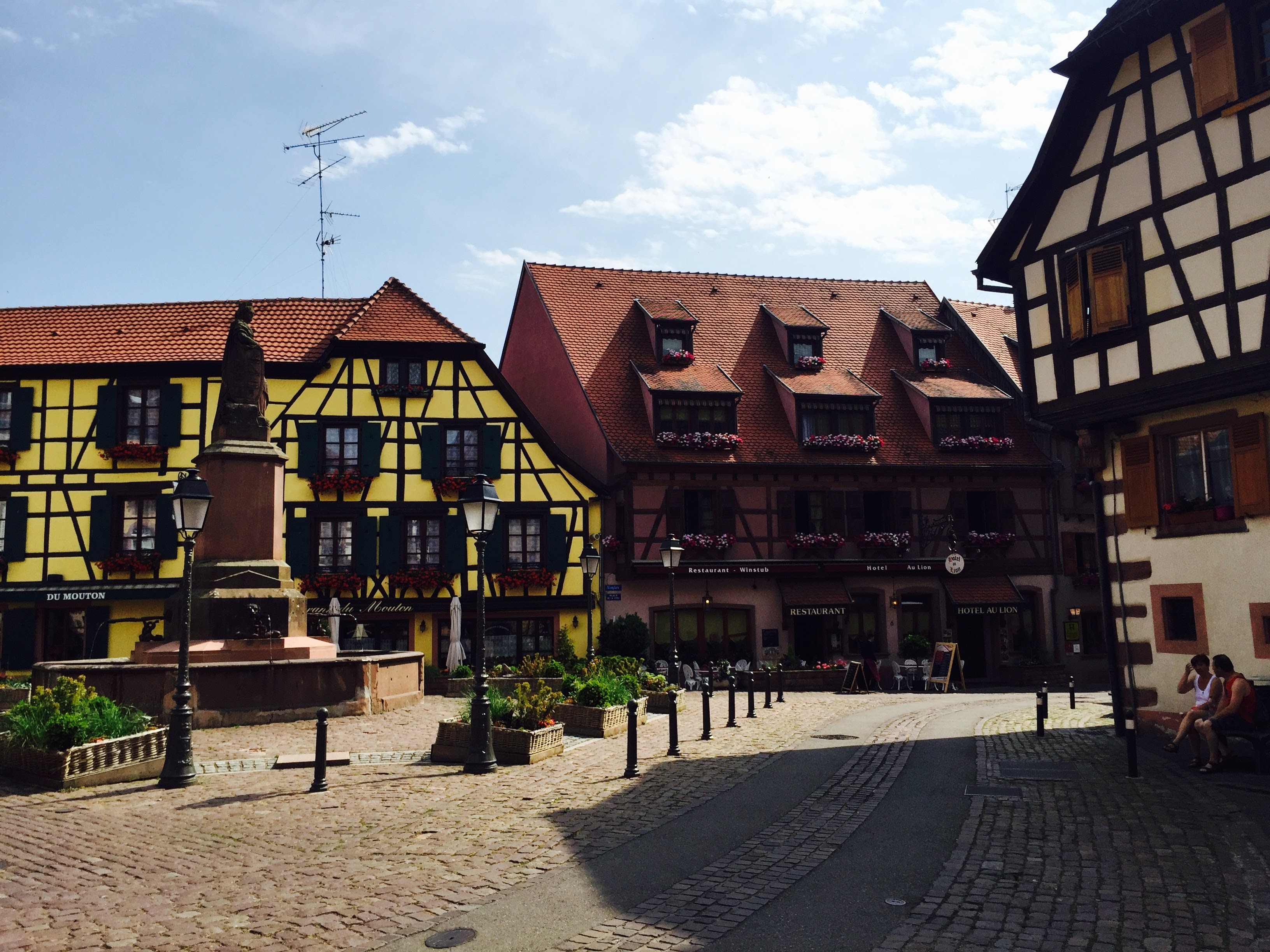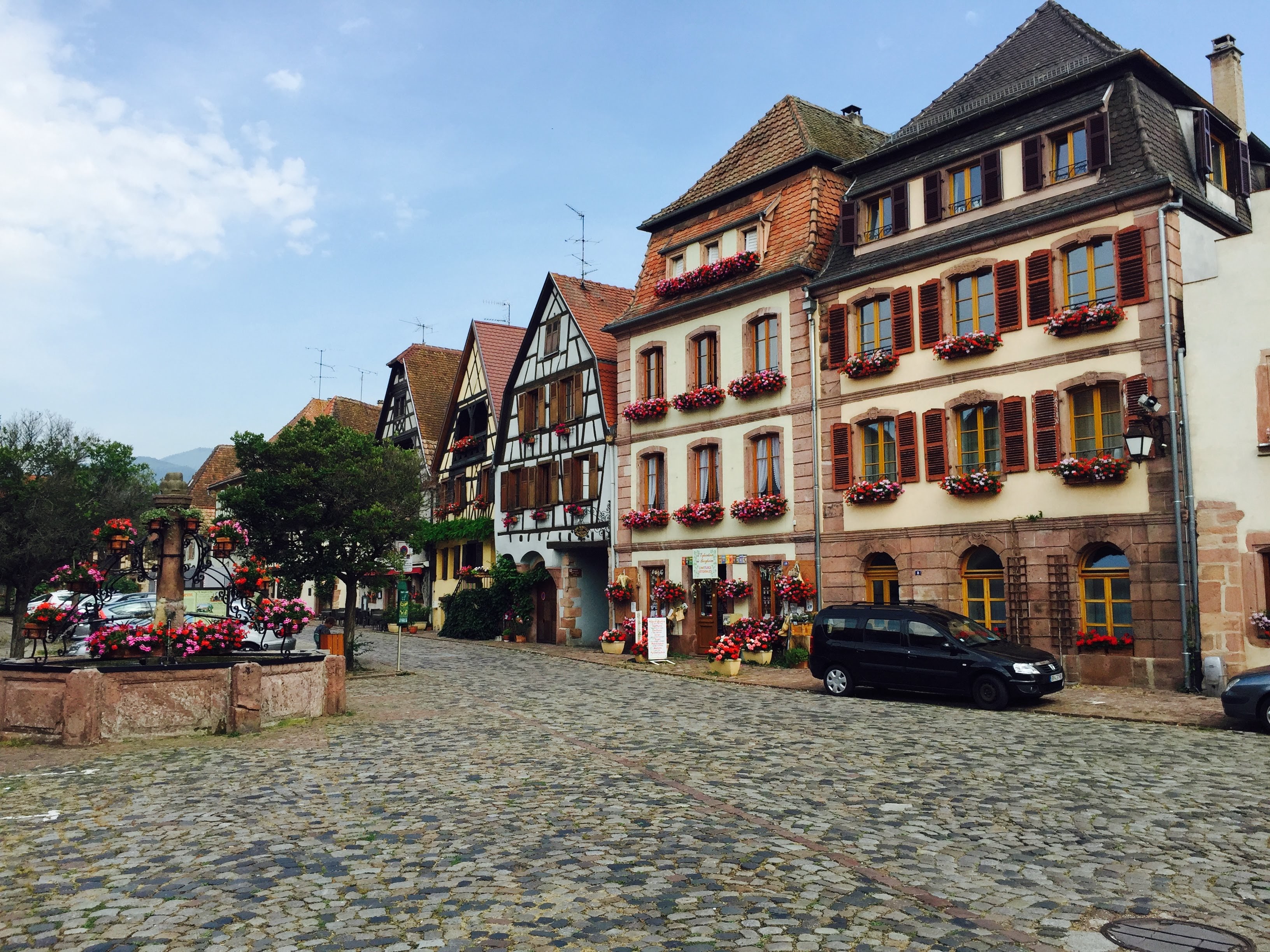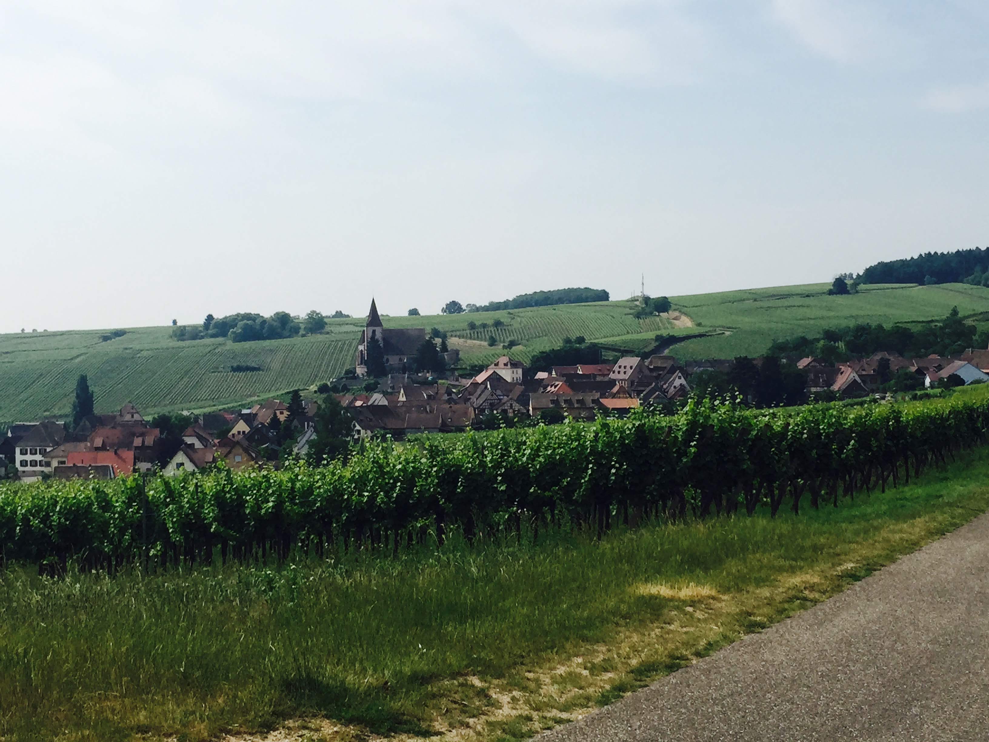 Ik heb er vandaag voor gekozen om een wat langere route te fietsen met wat meer hobbeltjes zodat ik de mooiste dorpjes van de streek niet zou missen. Uiteindelijk 130 kilometer gefietst waarbij ik eindelijk de hobbel ben tegengekomen die mij en Ezel de baas was. Heerlijk de hobbel opgelopen, wat overigens net zo’n zeer doet als fietsen maar dan met als voordeel dat je af en toe kan stilstaan. Met de fiets kan dat niet, want wanneer je eenmaal stil staat is er geen beweging meer in krijgen op een dergelijke hobbel. Gelukkig was ik niet de enige die niet fietsend boven kwam. Zowel voor als achter me liepen mensen met hetzelfde probleem. Na de hobbel volgde echter een geweldige beloning in de vorm van het plaatsje Riqueswhir, waar de tijd heeft stilgestaan sinds de middeleeuwen.