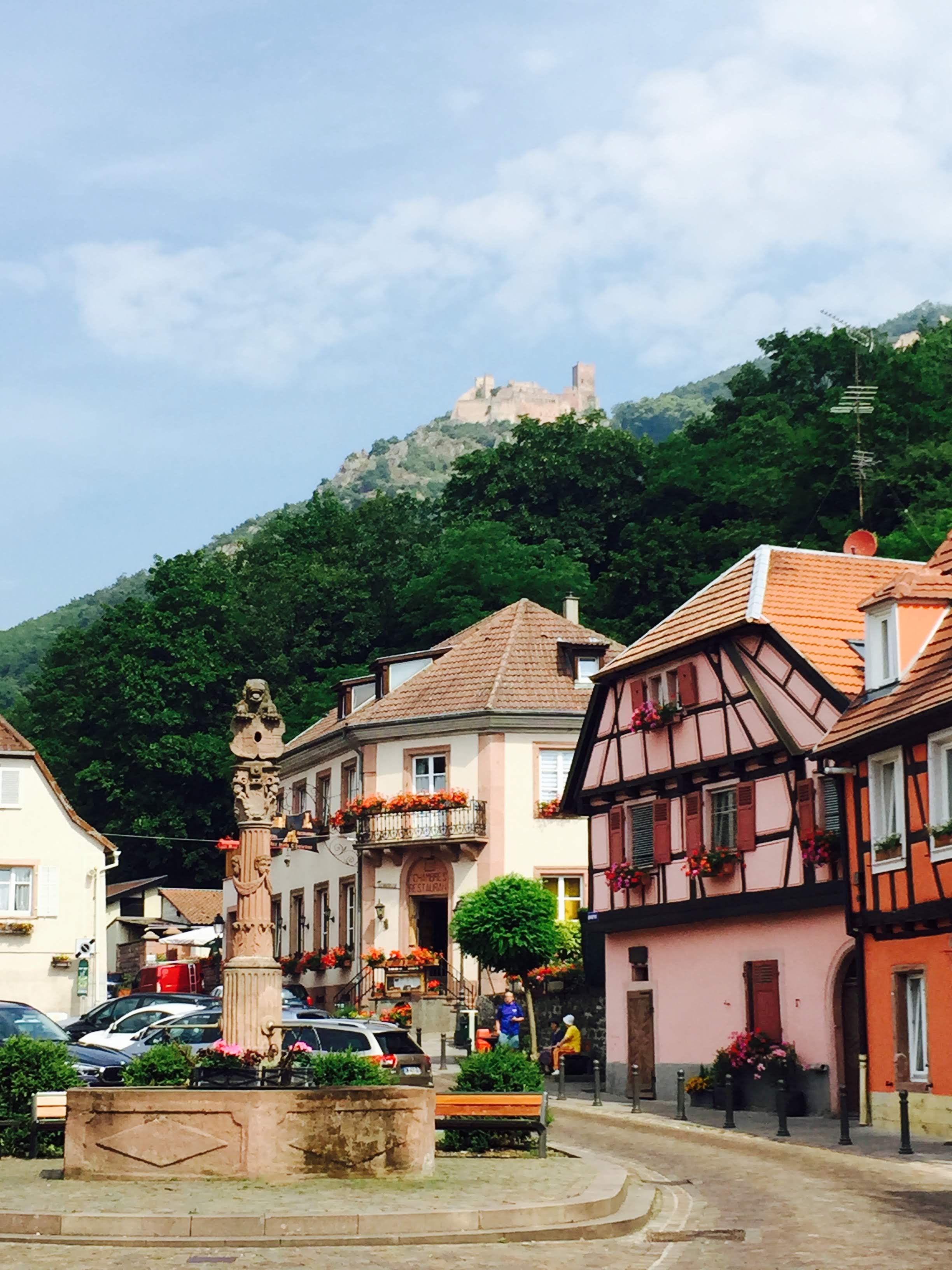 Anywayzzzz het is belachelijk hoeveel moois wij Nederlanders eigenlijk vlak om de hoek hebben. Vandaag de Vogezen uit gefietst de Elzas in, ofwel Druivenland. Overal waar je kijkt worden druiven verbouwd. En van die Druiven wordt uiteindelijk wijn gemaakt, die veelvuldig wordt verhandeld in de sprookjesachtige dorpjes die aan de voet van de Vogezen liggen. Als ik ooit de hemel ingelaten word dan ziet die er waarschijnlijk uit als de Elzas. Toch heb ik vandaag alle verleidingen weerstaan want met temperaturen van wederom boven de 30 graden heb ik al moeite zat om voldoende gehydrateerd te blijven. Nooit geweten dat een mens zoveel vocht kan verliezen met zweten. Aan het eind van de dag wel de eerste 13 druppels regen gehad van de reis, maar dat mag geen naam hebben.