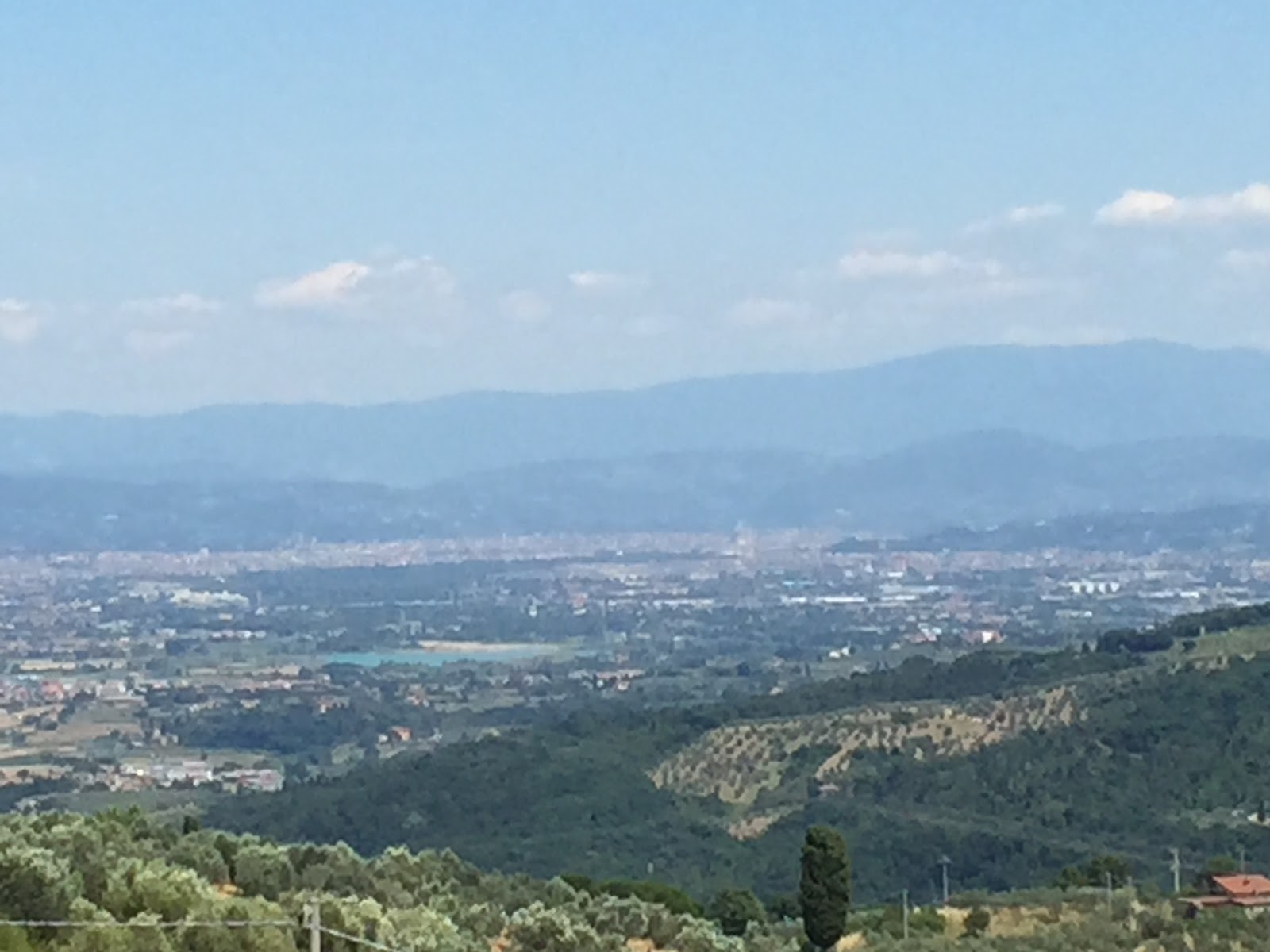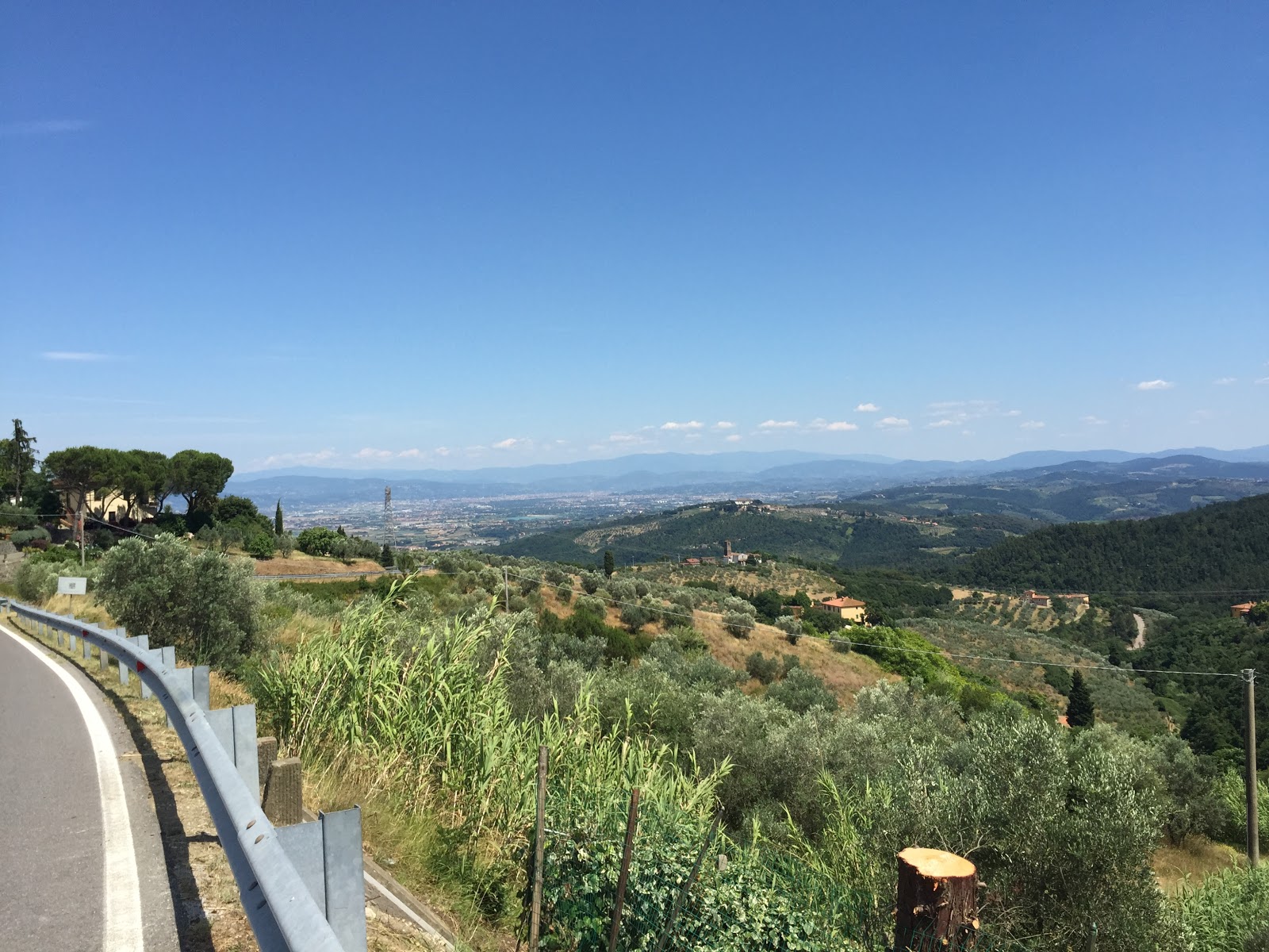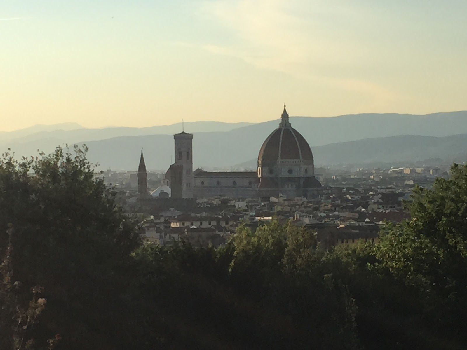 En hier, vanaf het puntje van de berg, met nog 35 kilometer fietsen te gaan, was voor het eerst de Duomo van Florence zichtbaar.