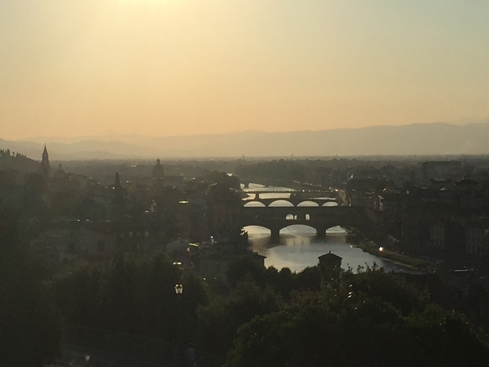 Na eerst een klein uur te zijn bijgekomen bovenop de berg en te hebben gegeten en gedronken, heb ik vervolgens de afdaling ingezet. Heerlijk mijn best wel vermoeide lichaam zonder inspanning de berg af laten suizen om daarna de laatste 15 kilometer nog over vlak terrein langs de rivier de Arno Florence binnen te fietsen. Ik heb morgen de hele dag de tijd om al het moois uit deze stad te bekijken en om mijn lichaam bij te laten komen voor de laatste 340 kilometer. Het tellertje gaf aan het eind van de dag een totaal stand van 2319 kilometer aan!