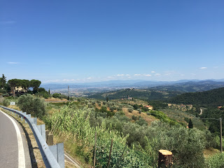 Na die eerste 65 kilometer moest ik nog even een bergje over van 434 meter hoog en dat viel onder de Toscaanse zon best een beetje tegen. Na alle bergen die ik al gehad heb, heb ik onderhand misschien wel iets teveel zelfvertrouwen gekweekt en word ik nonchalant. “Ach wat is 434 meter nou nog?!?” Nou deze 434 meter had best wel een paar hele hele steile stukjes en er stond geen zuchtje wind. Na veel gestopt te hebben en wederom mijn “ziek dier slinger techniek” toegepast te hebben op de steilste stukjes kwam ik met trillende handjes boven. Dat was alleen op de Bemelerberg eerder gebeurd (die trillende handjes dan). Het blijft toch wat, ik en hitte…