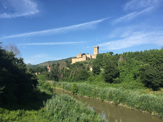 De eerst helft van de dag fietste ik heerlijk weg en voordat ik het wist zat de eerste 65 kilometer erop. Ook het Toscaanse landschap is ontzettend mooi. Ik had wel kunnen blijven stoppen om foto’s te maken van kasteeltjes en dorpjes en landschappen. Er was zoveel te zien dat ik mezelf op een bepaald moment betrapte op een enorme glimlach van genot!
