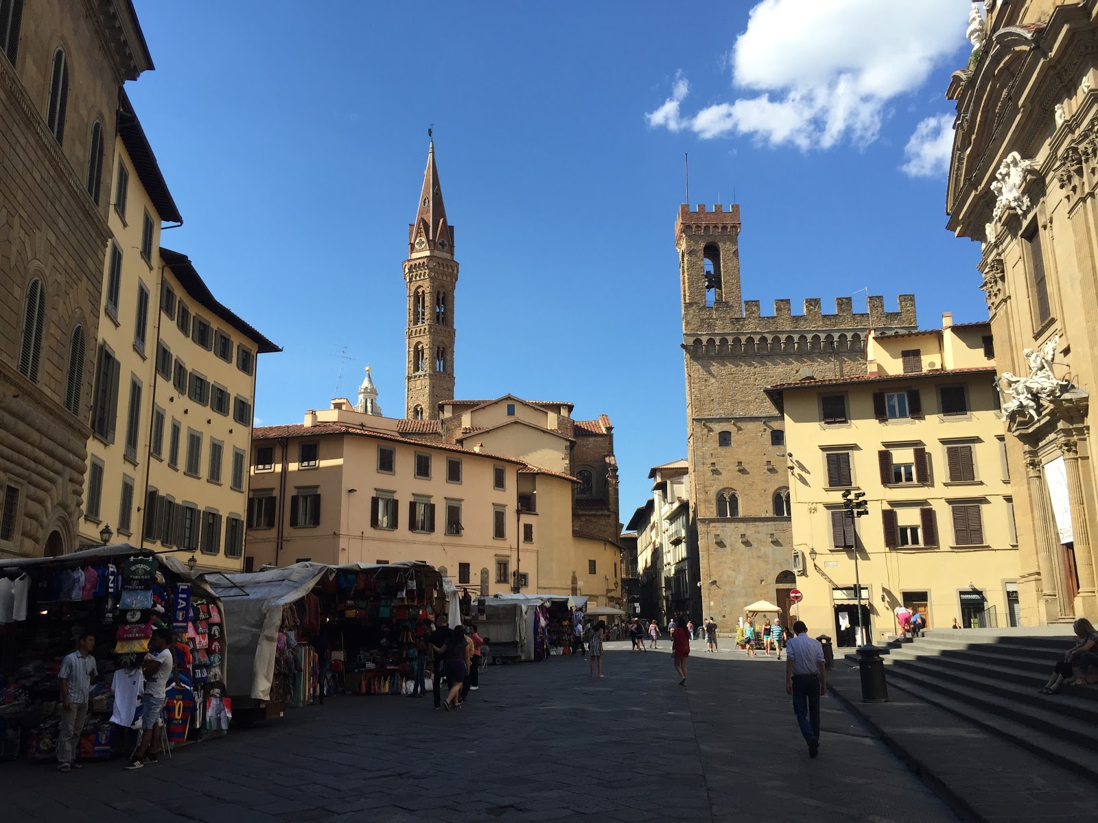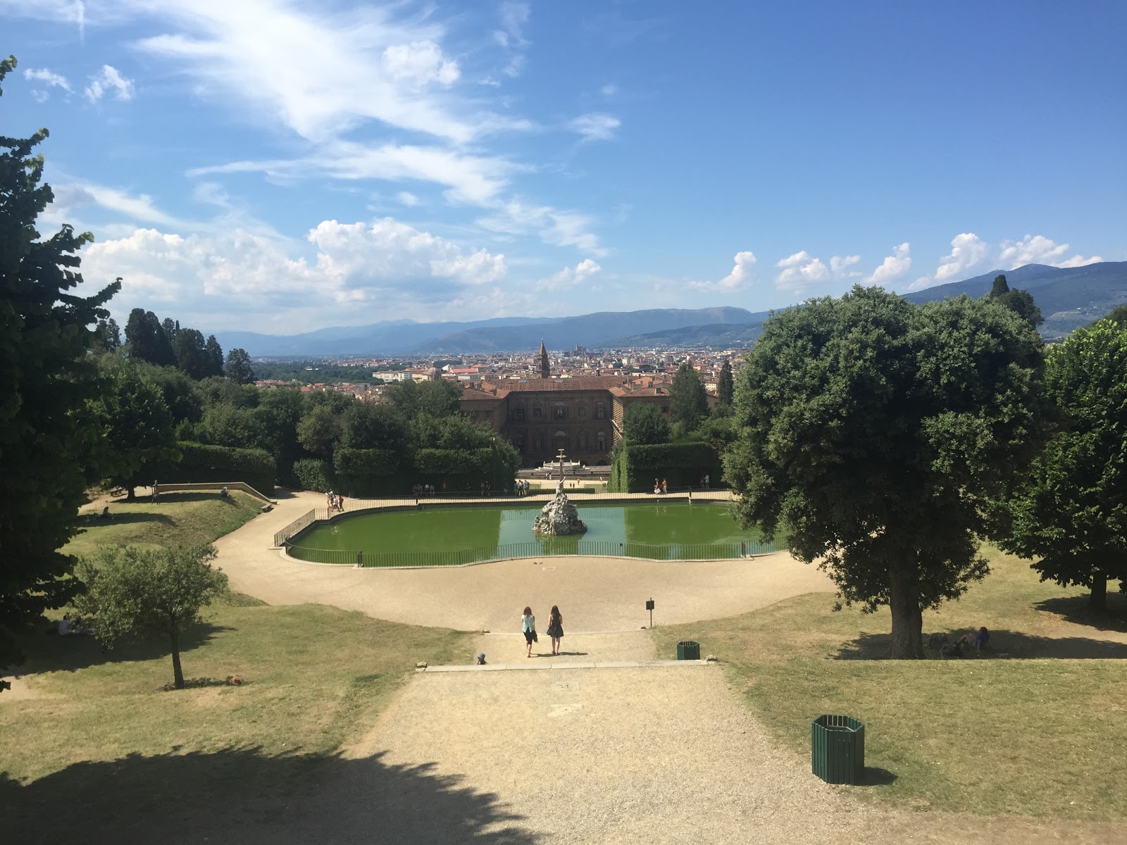 Verder veel mooie goed bewaard gebleven middeleeuwse architectuur en natuurlijk veel vroege en ook wel latere renaissance architectuur. Erg mooi allemaal. De hitte en bovendien ook de toenemende massa toeristen en selfie sticks speelde me echter flink parten dus tussen 1100 en 1400 heb ik daarom heerlijk liggen slapen onder een boom in de Giardino de Boboli achter het Palazzo Pitti. Vervolgens geluncht met een veel te grote en dure Gelati om daarna toch nog maar een paar uurtjes de Toscaanse heteluchtoven te trotseren en al het andere moois van de stad te ervaren. Eigenlijk wel een hele ontspannen dag en de oudere Duitse man die gister stellig beweerde dat ik minimaal drie dagen nodig zou hebben om alles te zien heb ik mooi zijn ongelijk bewezen! Hoewel ik best nog wel een kijkje had willen nemen in de Uffizi galerij, maar kunst is nu eenmaal niet mijn forté. Morgen naar Sienna! Er komt maar geen eind aan al dat moois! Ik krijg eindelijk al die oude meuk te zien waar ik op school jaren over gelezen heb 🙂