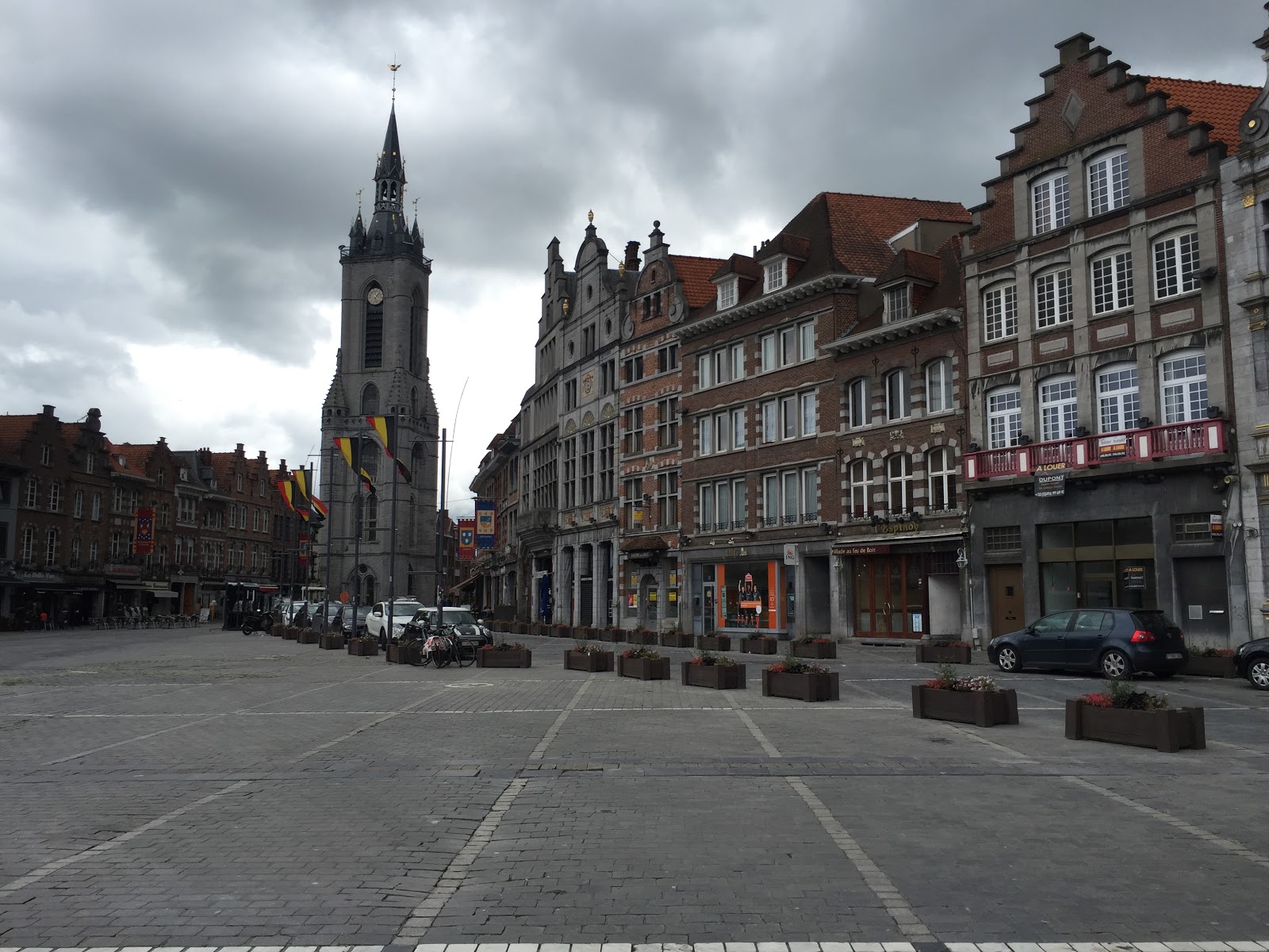 De eerste 100km heb ik vandaag langs de Schelde gefietst, wat vanwege de forse tegen wind best ploeteren was zo door het open landschap en langs het water. Ik was dan ook erg blij toen ik aankwam in Tournai, onder de Nederlandse naam ook wel bekend als Doornik. Het was een ware verademing om daar even uit de wind te mogen genieten van het fraaie marktplein, maar veelvuldig terugkerende graffiti leuzen als “Islam=Satan” en “Europa= georganiseerde professionele maffia” gaven me wel het gevoel in een andere dimensie te zijn beland.