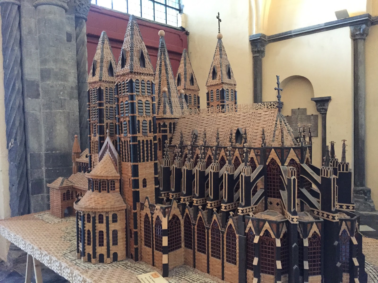 En omdat de kathedraal zelf helemaal in de stijgers stond maar even een foto’tje van deMaquette. Uit eigen ervaring kan ik zeggen dat hetbouwen van zo’n model ook een ambacht is!