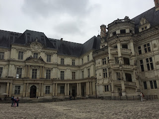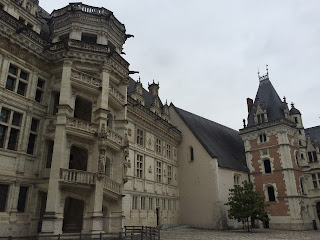 Na Chambord doorgefietst naar het plaatsje Blois, waar de Franse koningen vroeg woonden in eveneens een zeer fraai Chateau dat door de eeuwen heen steeds verder is uitgebreid in de stijl die op het moment van de uitbreiding gangbaar was. En ook dat levert een fraai ensemble op, hoewel ik me van het interieur wel heb afgevraagd of een dergelijke overdreven mate van polychromie werkelijk gangbaar was…