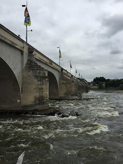 Het water van de Loire stroomt ruig lands de peilers van de brug.