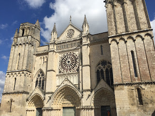 Vandaag ben ik uiteindelijk beland in het stadje Poitiers. Ik was een beetje bang dat de afstand me na de afgelopen luie dagen zwaar zou vallen, maar ik zat vrij ontspannen op het fietsje en ben ook zeer ontspannen aangekomen. Eindelijk heb ik dat enigszins triomfantelijke gevoel dat ik op eigen kracht ver van huis af geraakt ben. Een gevoel ingegeven door de snel stromende riviertjes, steile rotswanden, mooie gebouwen en vandaag her en der zelfs even de zuid Franse zon! Het is een verademing om de strak geschoren koren- en graanvelden uit het Noorden van Frankrijk eindelijk achter me te laten.