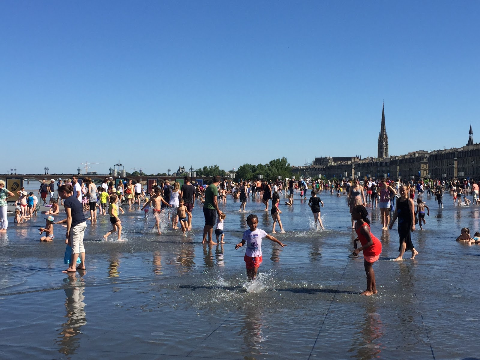 En afkoelen op het Place de la Bourse, waar ik nog nooit zo’n goed gebruikte fontein heb gezien!