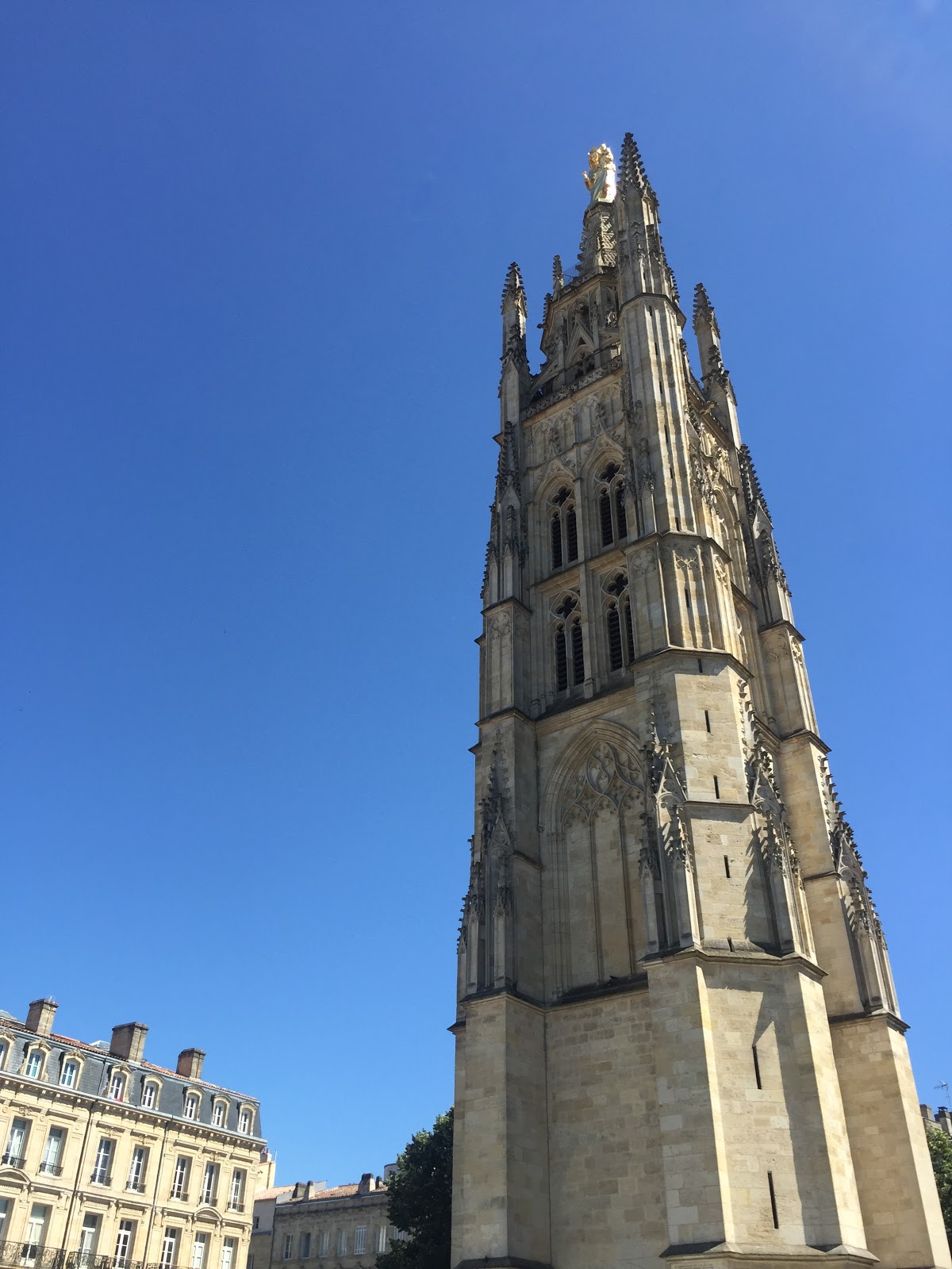 Daarna exorbitant lang en voor veel te veel geld op een terrasje aan de bruine troebele Gironde geluncht, om vervolgens samen met Smurf langs de hoogtepunten van het kaartje van het office de tourism te laveren. Tijdens dat laveren nog even langs drie fietsenmakers geweest want ik ben gister een boutje van mijn voordrager kwijt geraakt. Ik heb onderweg de pang wel gehoord maar kwam er vanochtend pas achter wat er daadwerkelijk gepangd was. Pas bij de derde fietsenmaker was het raak en kreeg Smurf even zijn welverdiende troetelmomentje.