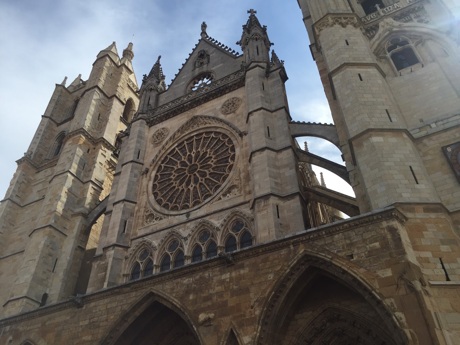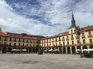 Het fietsen ging gister eigenlijk niet zo lekker en dat terwijl het landschap vrijwel vlak was, de temperatuur niet overdreven hoog was en er enkel een licht briesje stond. Eigenlijk perfecte fietsomstandigheden, maar toen ik gistermiddag van de fiets afstapte voelde ik me behoorlijk futloos en daarmee lamlendig, tot aan lichtjes in mijn hoofd aan toe. Eén en ander wijt ik vooral aan een wat magere maaltijd de avond ervoor, dus ik heb vanochtend koers gezet naar het centrum van Leon met het voornemen het er eens flink van de nemen en me vooral niet te druk te maken en te ontspannen 🙂