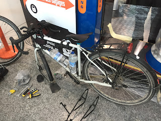 Om 1230 was ik met nog zo’n 4 uur te gaan ter plekke. Bij een kiosk waar je ook je koffers in kon laten pakken met folie heb ik vervolgens mijn fiets in laten pakken in een doos, zodat ik daar verder geen omkijken meer naar zou hebben. Daarna even opgefrist, wat gegeten en via de goede wifi verbinding met behulp van Netflix de rest van de tijd gedood.