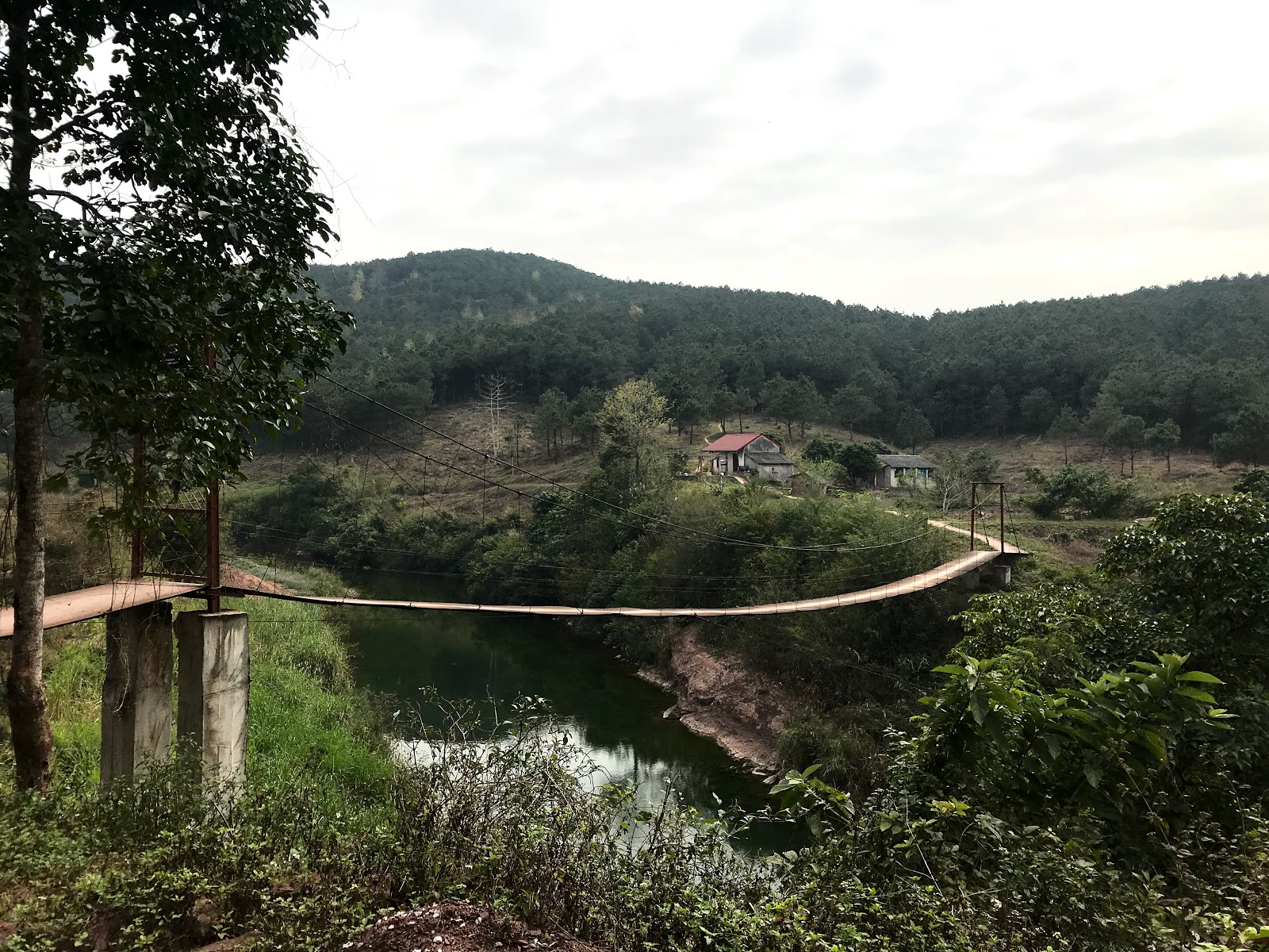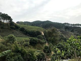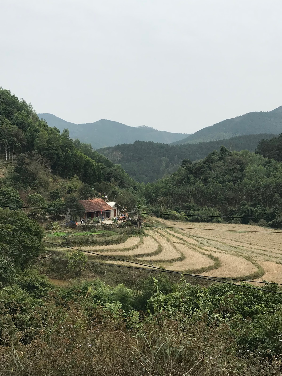 Day 1! The day started a bit hazy and with an overcast sky, adding to the already grey and pale appearance of the scenery. I’ve left this morning at 730 and left the busy roads of Halong behind me quite fast, replacing them with a road through rural area which was frequently and violently disrupted by the construction of the new express way between Hai Phong and Van Don. After about 30km I could also leave these frequent construction sites behind me, after which there remained only the many high tension power lines as a reminder of the large city that was still nearby. Gradually the power lines disappeared from the landscape and after about 40km I was making my first climb on an empty mountain road, with only a limited amount of scooters and barely any cars passing by. This was exactly the reason why I chose to head north!