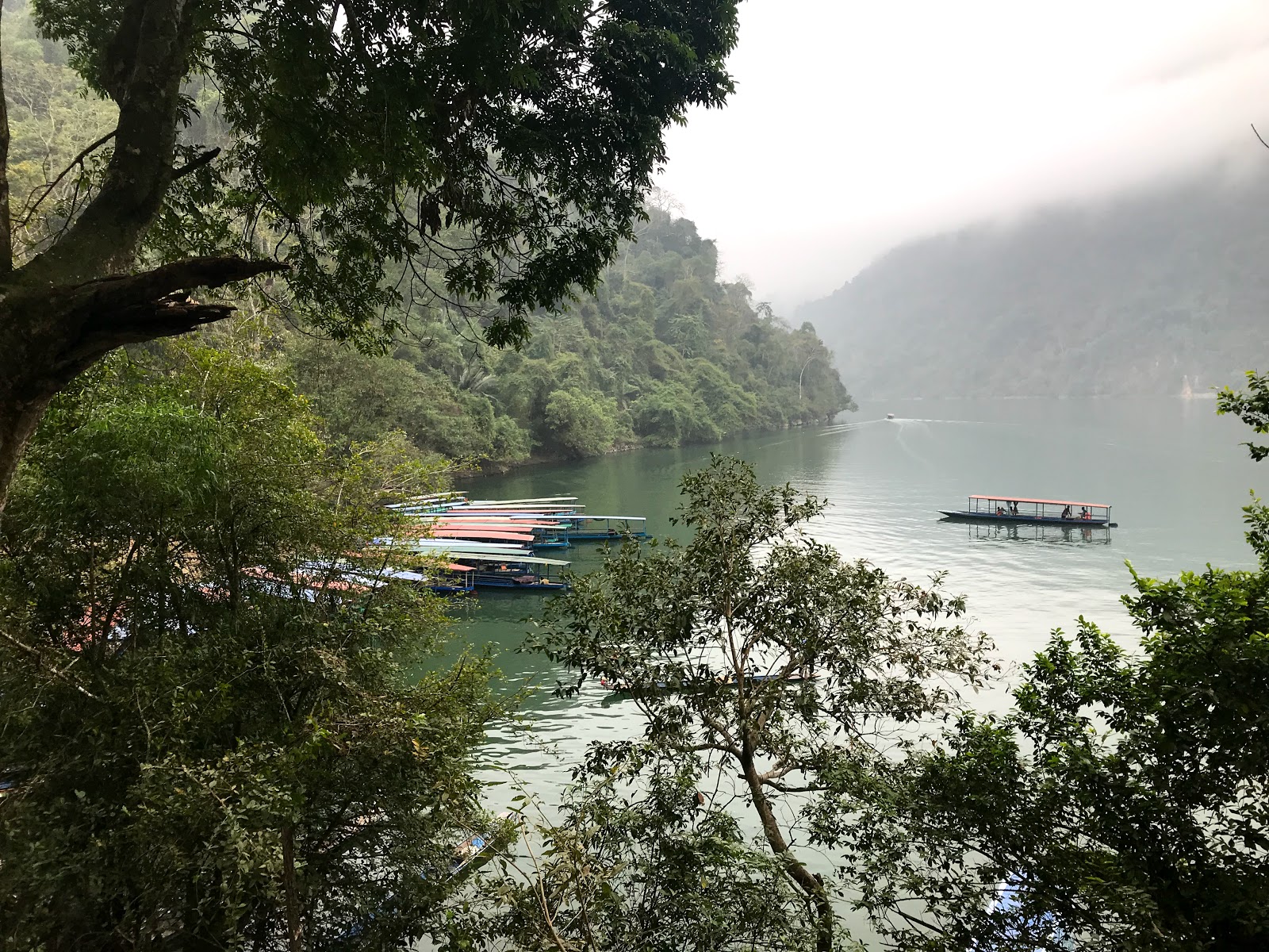 The lake and the river are both surrounded by high and steep limestone walls covered in old rain forrest vegetation, which this morning disappeared into the clouds. There are a very limited amount of roads in this area and the roads that are there are rugged and narrow. And knowing that the lake measures about 7km from north to south, you get some idea off how remote this beautifull area feels. And for someone born and raised in the Randstad, that’s quite exciting!