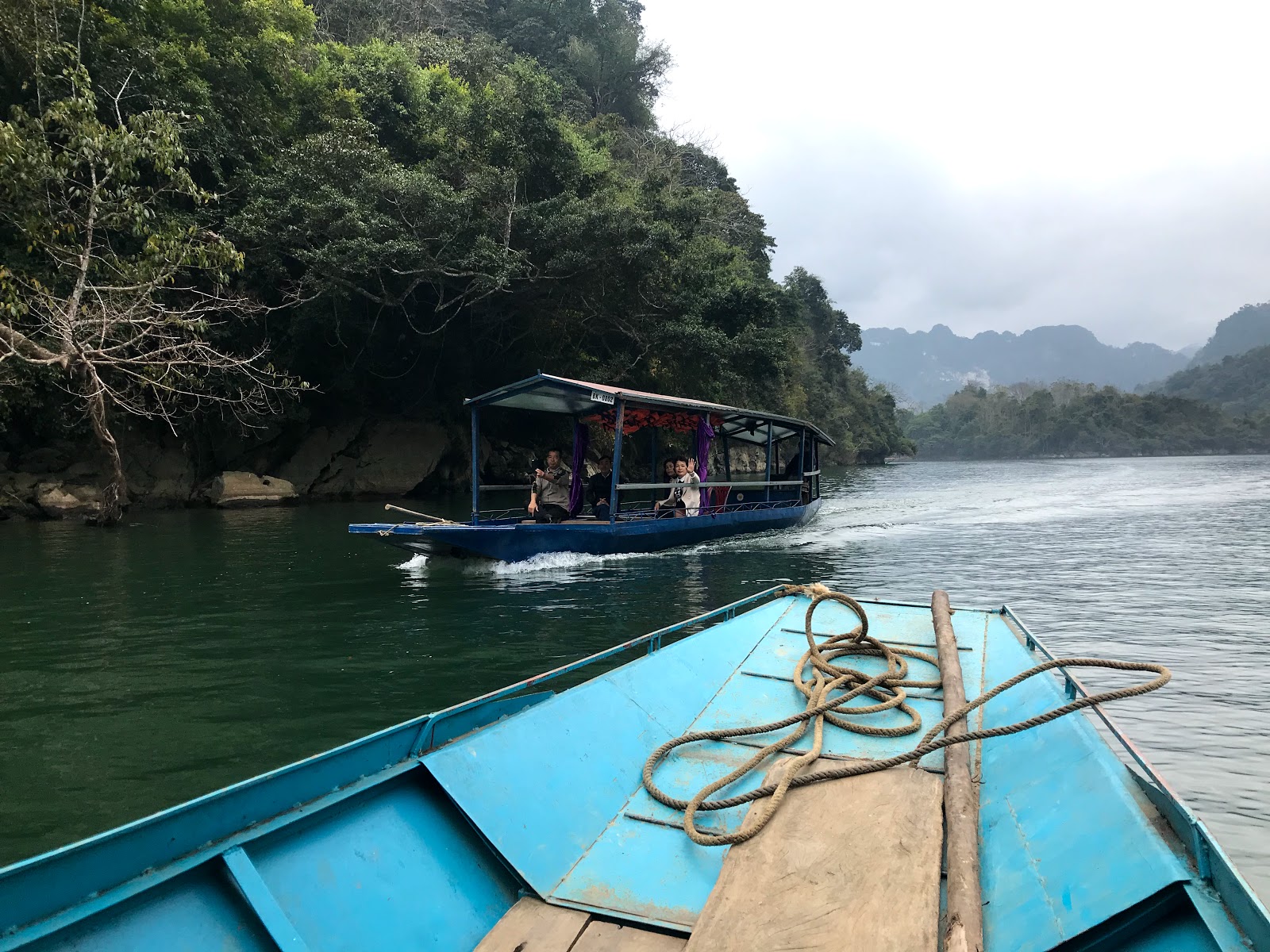 After 6 days of quite intense cycling, my buttocks were pretty happy that they were separated from my saddle today. And the rest of my body didn’t mind not riding either 🙂 So today I had some time to explore Ba Be lake and the surrounding national park. The Americans told me yesterday that the best way to do that was by boat, so at around 830 i found myself sitting in one, together with someone who would navigate it accoss the lake and the nearby river!