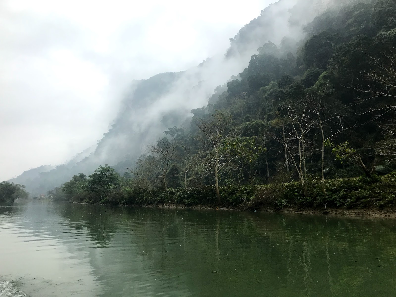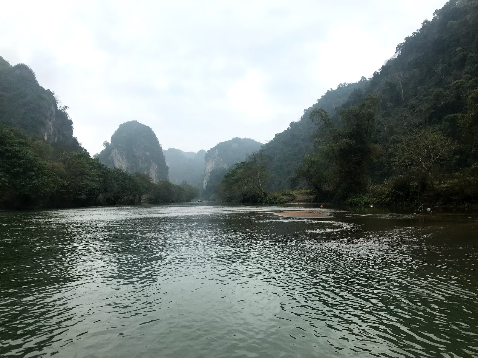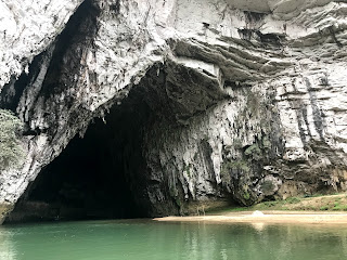 After 7km on the lake we reached the Nang river, which is one of the rivers filling the lake. We followed the river up stream for a while untill we reached Động Puong, which is this enormous cave through which the Nang river passes the limestone rock. The cavern was truly spectacular. A cathedral of nature and home to this big colony of bats which you could here squicking from the darkest corners of the cave…