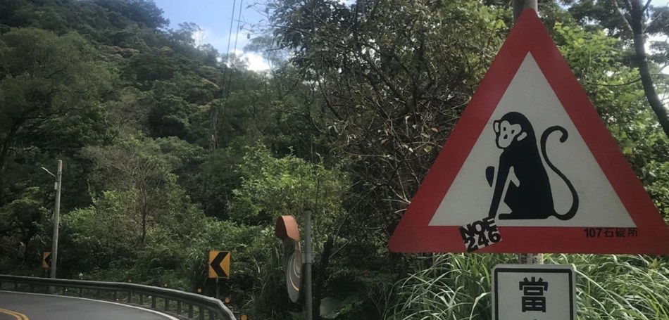 Today I crossed the Island from west to east, from Linkou to Yilan, meandering through the mountains and past tea- and palmtree plantations! It’s quite amazing how fast you can leave busy Taipei behind you and enter beautiful nature! Views were spectacular, and the Monkey warning sign is no joke! During my descent to Yilan I barely avoided one jumping out of the bush 😯 And this was not a small one, but similar sized to the Olive baboons we encountered in Africa… Although in Africa I didn’t ever come close to a near collision. Fortunately both me and the monkey survived without any damage done. Tomorrow I’ll make my way north along the coast, to the old mining town Jiufen. Great ride today!