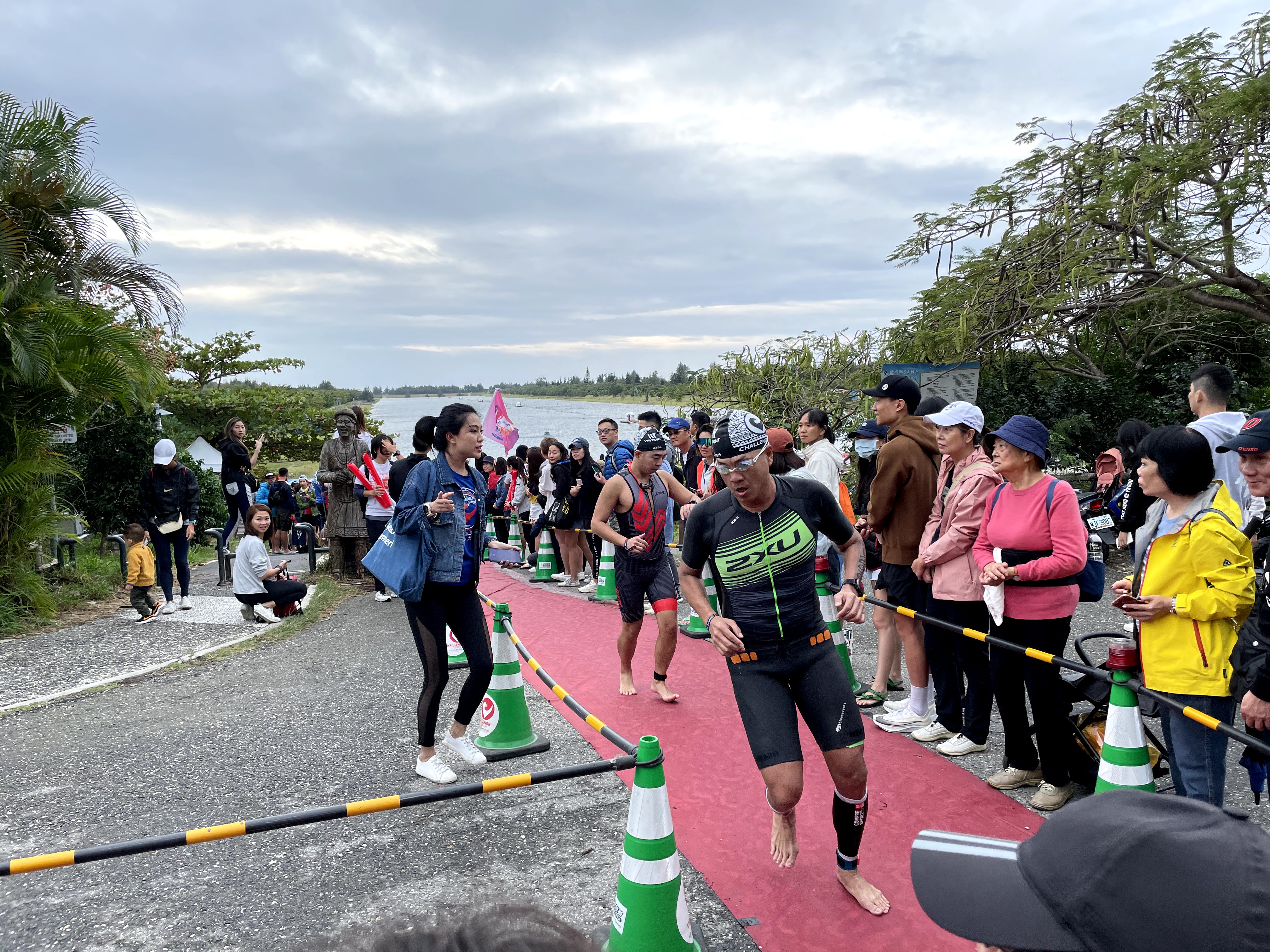 Trying something new today: stand in line in the pouring rain for 30 minutes for registration – attend pre- race briefing – sort out all my stuff after that – go to bed early – have a shitty night of sleep due to nervous anticipation – wake up at 0400am – check in my bicycle at 0430 am – wait for 1.5 hour for the race to start – watch the sun rise over the swim lake – get ready to start – start – swim for 1.5k – come to the realization that open water swimming is different from swimming in a pool – trying not to drown in the turmoil – see all my competitors get away from me at high speed – got stuck under the paddle board of the lifeguard – things ease up a bit and I find my stroke – now the big overtaking game has started – enjoying swimming under the early morning sky, including rainbow – i make it though the swim rather well – 8th out of 80 out of the water – 850 meter run towards my bike – get my shoes on and on the bike within 3.5 minutes – 40k bike ride along the eastern coast of Taiwan – drink some water – mountains on one side, the pacific ocean on the other – palm trees on the side of the road – i’m competing with my monster Africa bike against light weight road bikes and time trial bikes – i do rather well! – 4th out of 80 of the bike – just take of my helmet and start the 10k run – people are awake now and cheer along the track – my legs are wobbly – should have done more brick sessions – after 2k the wobblieness subsides – nevertheless I’m a shitty runner 😂 – i take it easy and regulate my breath – skip all the aid posts – keep telling myself that I can’t stop – 5k to go – 3k – last 500m – finish! – 26th out of 80 out of the run – overall position 6th out of 80! – surprised myself with that 😊- feels good 😊 – probably says more about the Taiwanese than it says about me – enjoy the good vibe in the finish area – collect my bike – take a shower – enjoy some more of the good vibe around the finish area – eat – sleep – start planning the next event! Thank you Challenge Taiwan! I had a lot of fun! Great weekend! Lots of respect for those competing in the 113k and 226k versions.