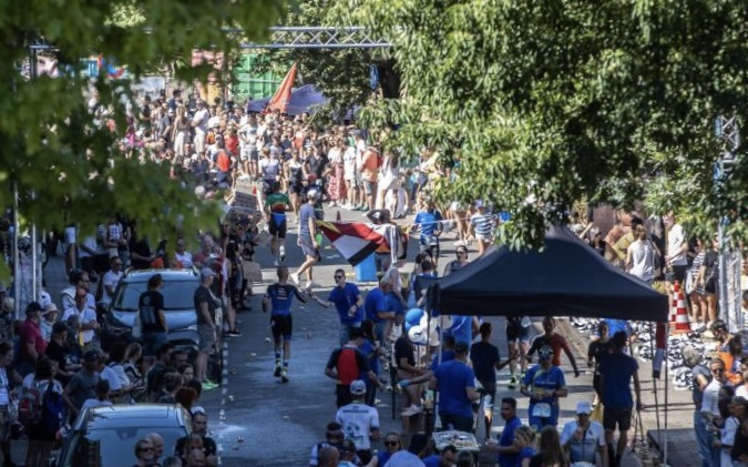 Legs felt good during the first km of the run, meaning my brick sessions paid off. I was very anxious about my digestive system which could easily have been my nemesis🙈, but it seemed to hold up as well☺️. After k1,5 i came to the conclusion that i was super hungry though, despite having fueled the best I could on the bike. It was the only time I panicked a bit, because how on earth am I going to run a marathon when I already feel hungry after the first km? Knowing that in the worst case I could walk the whole thing took the panic away though. Made it to the first aid station and took my time to eat some crackers and drink some coke. It felt a bit wrong to already be walking this long this early in the run, but it helped me settle my hungry stomach ☺️ After finishing the crackers and coke I started running again towards the 2nd aid station and did the same: walking and taking time to eat salty crackers and coke. And then started running again, until the next aid station 2k down the course. Crowds were even crazier along the run course. There were some big parties at some parts of the course. And it was quite warm, but there were people out with their garden hoses, spraying every contestant who wanted to be sprayed. They took fun in it, but it was a real life safer for me ☺️