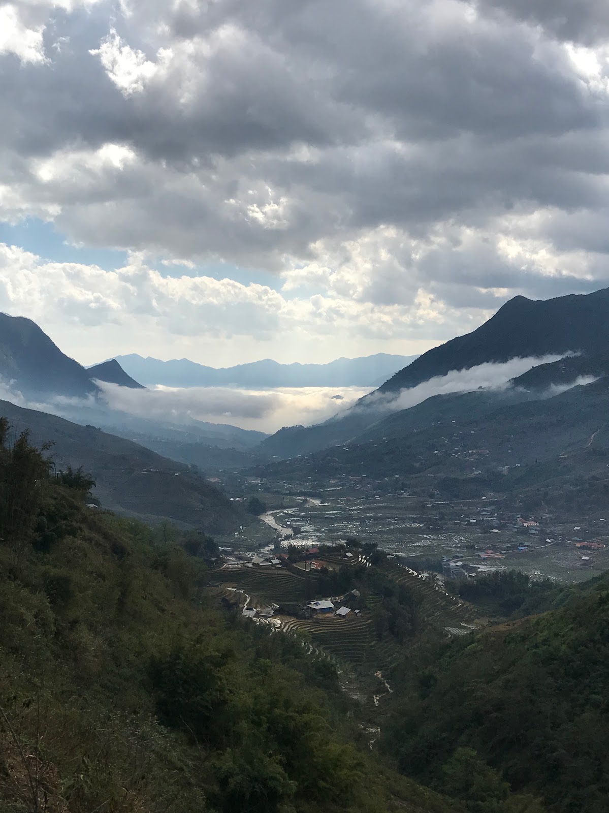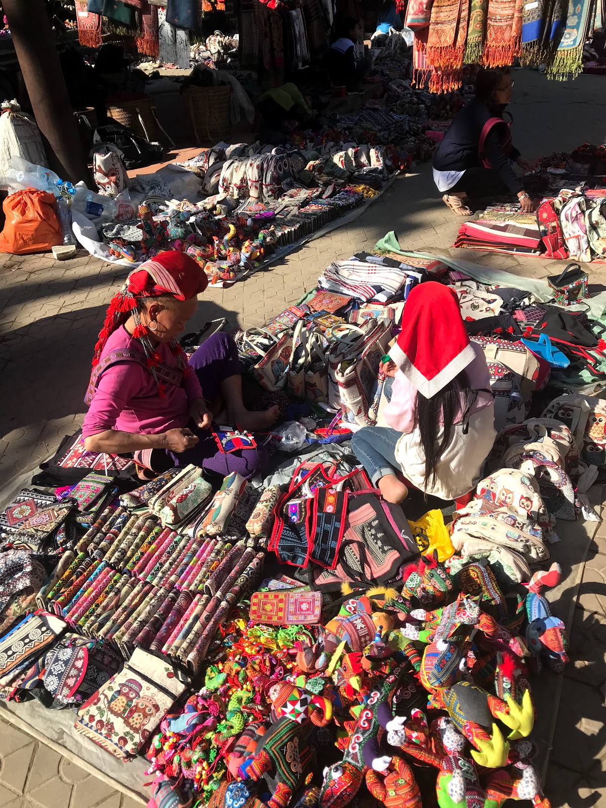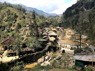 Right before Sa Pa I came across a crossroads, with one road leading to Sa Pa’s city center (to which I actually intended to go to) and a road leading just into Sa Pa. For some dumb reason I chose the second road and walked into Sa Pa, and then also walked out of it again. I figured that if I would just keep walking, that I would come accross another road leading back to the city center, but I didn’t. Instead the road led into the Valley. At some point I came through a traditional Hmong village. In this village I found some stairs leading even deeper into the valley. Along the stairs were stalls with traditional colorfoul Hmong arts and crafts, which were a joy to look at. I followed the stairs along the stalls down and down and down, untill I reached the river at the bottom of the valley. Two rivers came together at this point and at their crossing was this very nice bamboo village, with houses and waterwheels using the power of the fast flowing rivers. At the point where the rivers merge there was this magnificant waterfall (Cat Cat falls). It was a really nice surprice and incredibly unexpected! So nice to take a wrong turn now and then 🙂