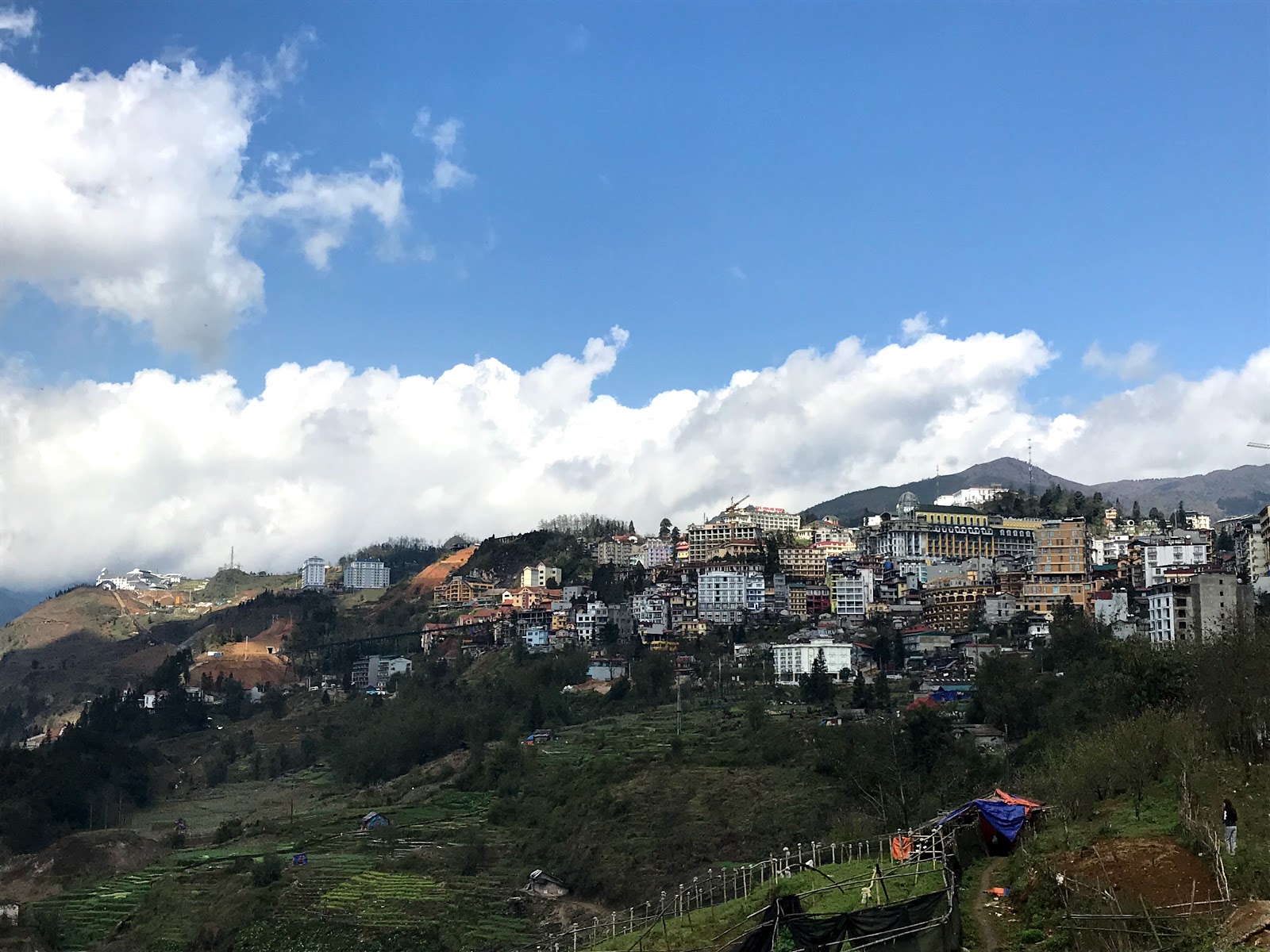 After going all the way down into the valley, I also had to climb out again. I took an alternative road out of the valley and as soon as I reached the mainroad a motorcyclist stopped and asked me if I wanted a ride. As I had already walked some 12k I accepted the lift and let him drop me of at the Jade Hill. From there, a cable car leads up to the top of Fansipan Mountain, the highest mountain of Indochine (some 3000 and somewhat meters high). For work related reasons I had to make the ride, so I bought a ticket and minutes later I found myself in the very transparant cabin with some 40 Vietnamese who all found me very interesting again while I was just praying that the thin cable that supported the cabin would not snap, that the machinery wouldn’t malfunction and that the cabin wouldn’t start swaying for some funny reason. Cablecars are just not really my thing. The views from the cablecar were great though, but at the top of the mountain it was crowded, foggy, windy and cold. So I found myself in the cable car back to Jade Hill again pretty fast.