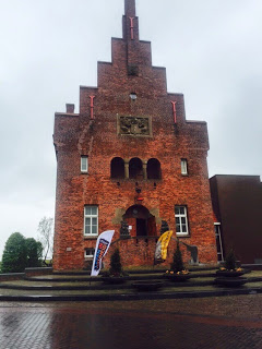 Waar gister de wind pal uit het noorden waaide, waaide de wind vandaag vanuit het zuid-westen. Voordeel hiervan was dat de eerste 25 kilometer ontzettend vlot wegfietste, maar dat ik de wind op de afsluitdijk vol tegen me had. Eenmaal bij de afsluitdijk aangekomen was ook de miezer flink losgebarsten. Met windkracht 5 tegen en vol in de regen ben ik begonnen aan deze 32 kilometer lange uitdaging. Na een kilometer of 10 kon ik wel huilen, zo nat en koud was ik en zo langzaam ging het. En dan te bedenken dat ik nog 22 kilometer te gaan had! Echter na twaalf kilometer werd ik ingehaald door een groepje van 4 vakantiefietsers die in 7 dagen tijd langs de kust naar Limburg fietsten, een tocht van ca 800 km. De volgende 12 kilometer heb ik heerlijk achter hun aangefietst. Heerlijk uit de wind en op best een aardig tempo van 16 a 17 kilometer per uur, wat aanzienlijk hoger lag dan mijn eerste 12 kilometer, waar ik me gelukkig mocht prijzen met met een snelheid van 12 a 13 kilometer per uur. Bij het het monument dan Dudok gingen mijn werkers echter koffie drinken (of zoiets) en heb ik mijn beproeving zelfstandig voortgezet. Heren ik ben u zeer erkentelijk dat ik achter u aan kon fietsen! Gelukkig leek de wind nabij Den Oever iets af te nemen, en zo bereikte ik uiteindelijk weer vast land.