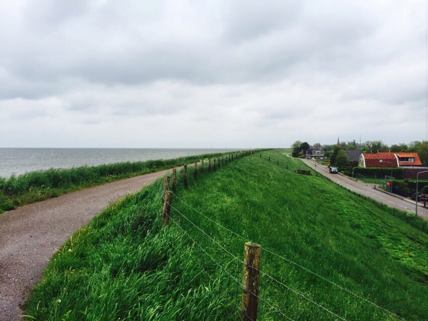 Hier zie je mooi het hoogteverschil tussen IJsselmeer en Noord Holland
