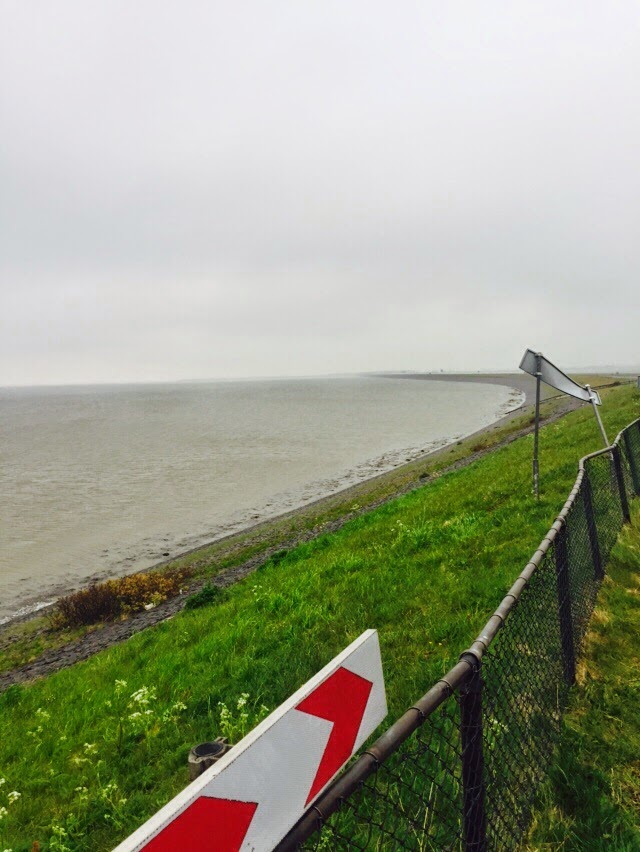 Na de afsluitdijk dook ik in Noord Holland direct het bos in, waar ik dolgelukkig mee was. In bossen waait het minder hard! Overigens wist ik helemaal niet dat ze in Noord Holland bossen hebben. En dat wist ik van Friesland ook niet. En blijkbaar hebben beide provincies in ieder geval één bos! Ook een sluis gezien die heel mooi duidelijk maakte hoe ver Nederland op sommige plekken wel niet onder zeeniveau ligt. Na slechts 4 kilometer in de bossen kwam ik langs een dijk te rijden in de Wieringermeer. Na de afsluitdijk gehad te gebben volgde nu weer 25 kilometer ontzettend saai landschap. Dit maal gelukkig niet met wind tegen maar met de wind van schuin opzij. Wel met zo ongeveer horizontaal vallende miezer regen.