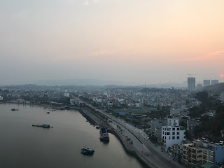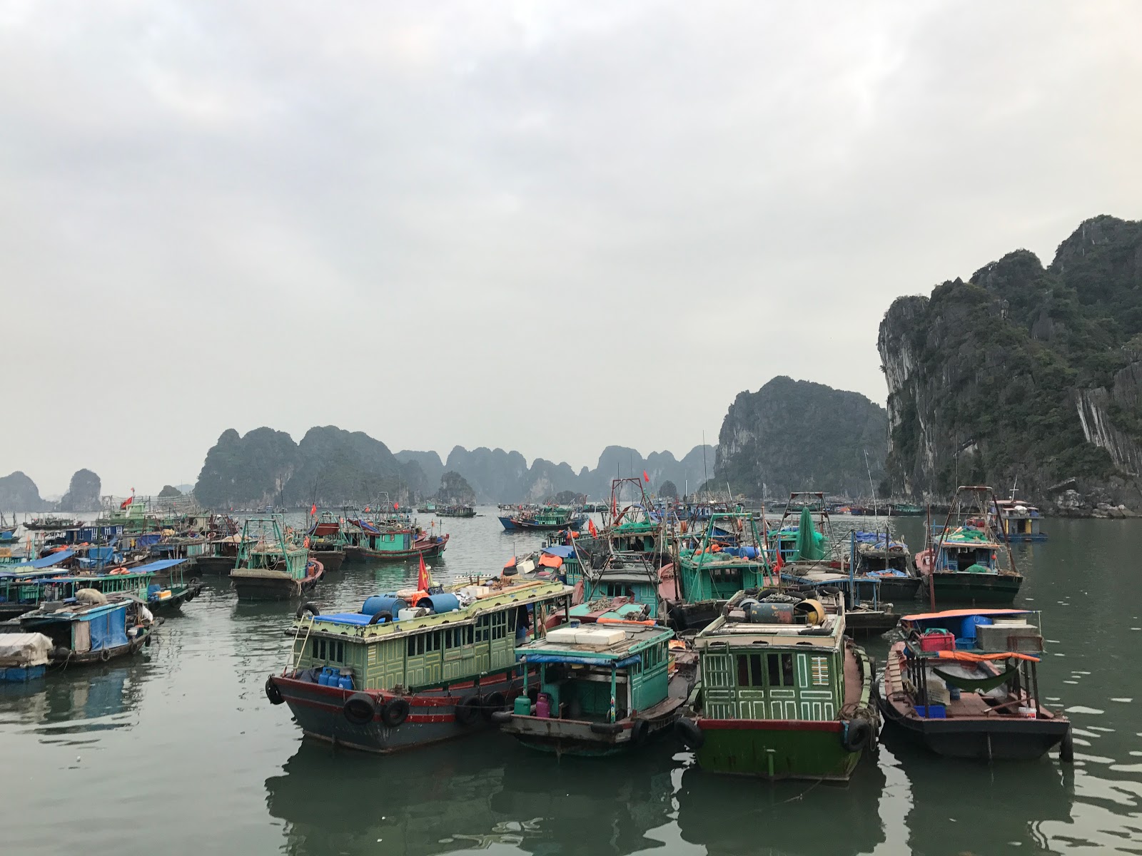 So when I first heard that I would relocate to Ha Long, my expectations regarding the natural beauty were pretty high. However, as it turns out, Ha Long is a place with multiple faces, one prettier than the other. There is no doubt that the nature surounding Ha Long is absolutely stunning, but it co-exists with a city which is dominated by industry and tourism. The city once started out as a small fishing village. When the French came they found coal and started mining for it, leaving deep pits in the landscape around the city. The coal also attracted electricity plants that run on coal, providing electricty to the region. All the digging for and burning of coal results in a city that is covered in a fine layer of dust, causing the scenerey to look a bit pale and grey.